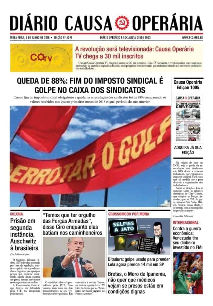 Em tempos em que a burguesia tenta apagar as linhas que separam a direita da esquerda, os golpistas dos lutadores contra o golpe; em tempos em que a burguesia tenta substituir o vermelho pelo verde e amarelo nas ruas e infiltrar verdadeiros inimigos do povo dentro do movimento popular, o Diário Causa Operária se coloca na linha de frente do enfrentamento contra tudo isso.