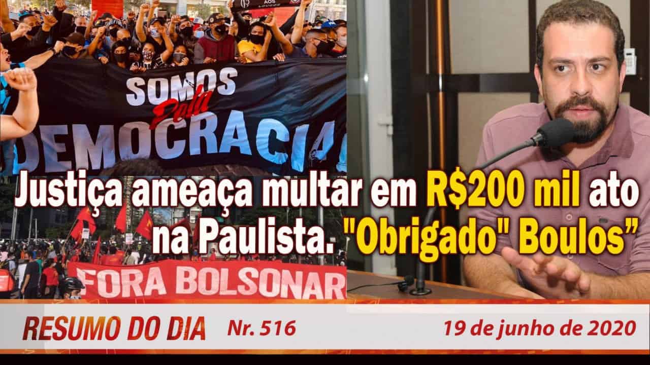 Justiça ameaça multar em R$200 mil ato na Paulista. “Obrigado” Boulos.