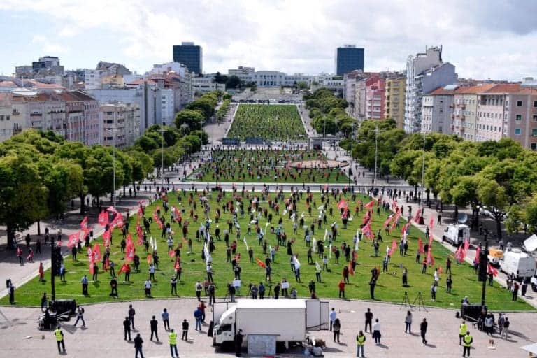 Trabalhadores de Portugal fazem atos pelo país, com espaço de 3 metros entre todos os presentes. Atos foram chamados pela CGTP, central sindical portuguesa