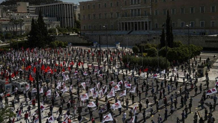 Mesmo com a pandemia trabalhadores protestam no 1º de maio na Grécia, exigindo do governo proteção contra o Corona virus.