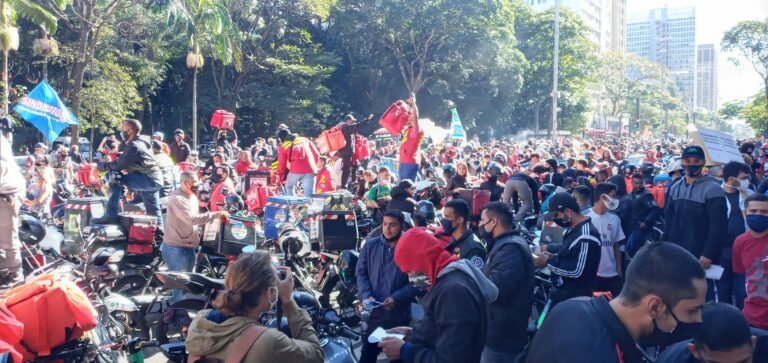 Os chamados entregadores de aplicativos realizam nesta quarta a primeira greve nacional por melhores condições de remuneração e trabalho. Veja imagens do atos pelo país.