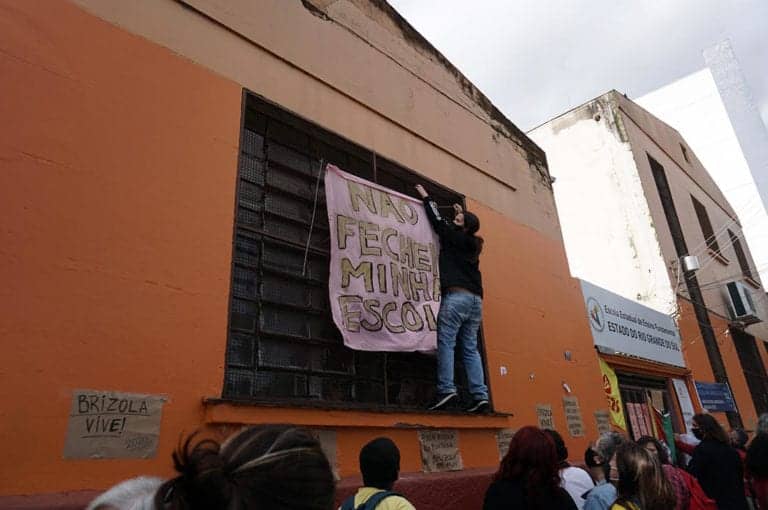Um grupo de pelo menos 40 estudantes, pais e professores realizaram uma ocupação da Escola Estadual do Rio Grande do Sul, em Porto Alegre, contra o fechamento da unidade
