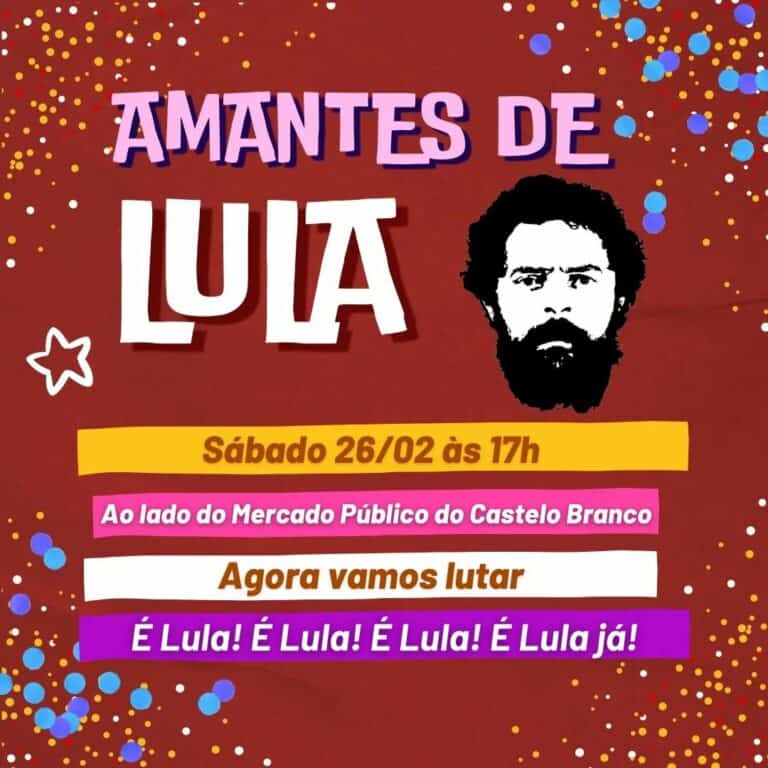 Neste sábado (26/02), o bloco de carnaval “Amantes de Lula” fará a sua grande estreia às 17h, um verdadeiro ato de luta contra o golpe e defesa da cultura popular.