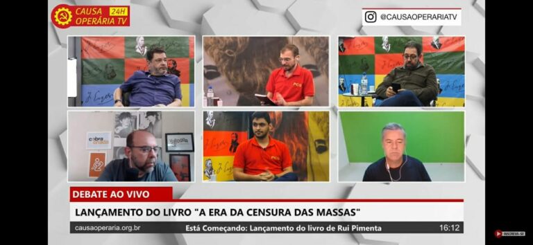 Assista ao vivo o debate e lançamento do mais novo livro de Rui Costa Pimenta sobre a censura nas redes sociais