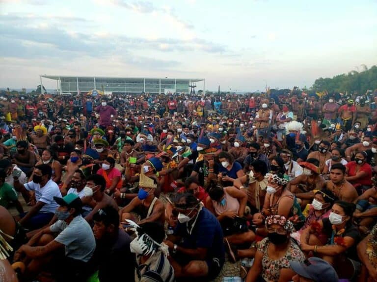 Milhares de indígenas estão em Brasília neste momento para protestar contra a aprovação da tese do marco temporal pelo STF, um imenso retrocesso à população indígena brasileira