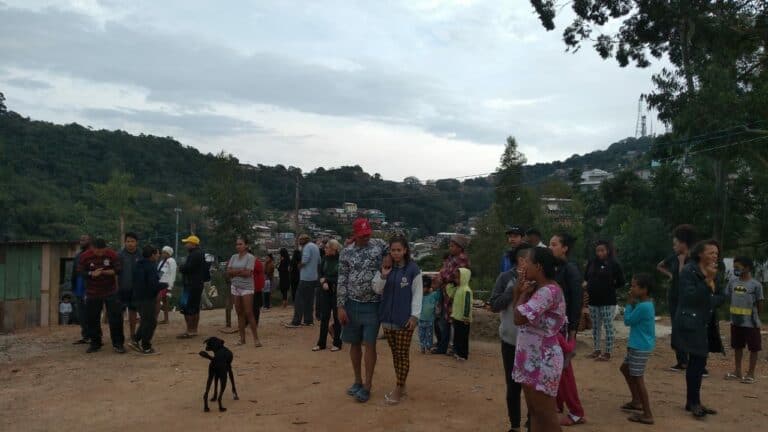 Após a reintegração de posse, moradores desalojados fizeram um ato em frente à prefeitura de Volta Redonda