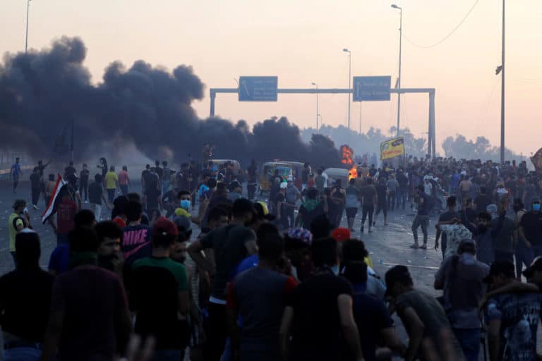 No Iraque, manifestantes tomam as ruas contra a política imposta pela invasão dos EUA em 2003 e exigem a derrubada do regime político.
