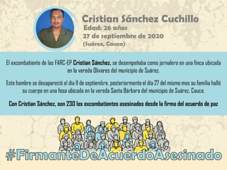 Cristian Arnulfo Sánchez Cuchillo era mais um ex-combatente firmante do Acordo de Paz em 2016.