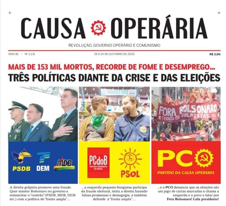 A campanha do Partido da Causa Operária é feita por Comitês Eleitorais de Campanha, vai às ruas e convoca os trabalhadores a derubarem Bolsonaro e colocarem Lula na presidência