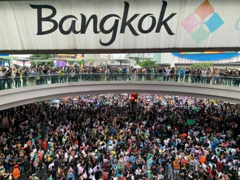 Milhares de pessoas em Bangkok se manifestam contra a monarquia e reclamam mais democracia na Tailândia