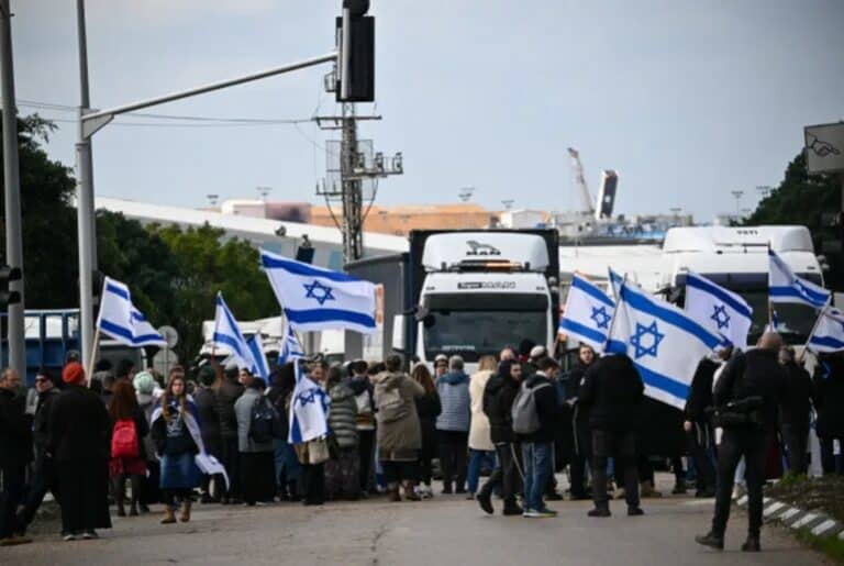O piquete fascista impediu que 132 caminhões adentrassem a Faixa de Gaza, o exército declarou que o local é de acesso proibido, mas está deixando os piquetes aconteceram há semanas