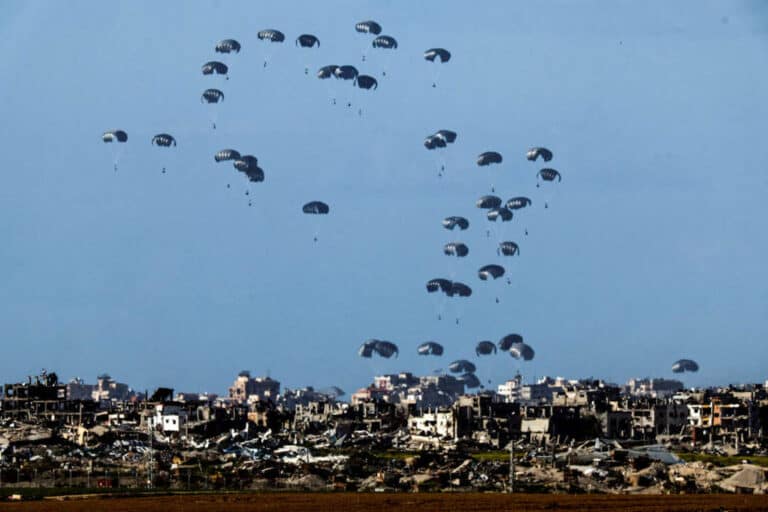 Nos últimos dias, países imperialistas têm despejado por meio de avião alguns contêineres contendo ajuda humanitária na Faixa de Gaza
