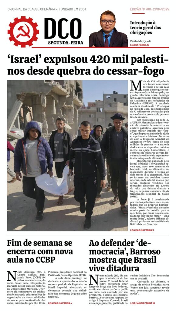 Estamos comprometidos incondicionalmente com a defesa dos interesses dos trabalhadores, do povo pobre e oprimido. Somos um jornal classista, aberto e gratuito, e queremos continuar assim. Se já houve um momento para contribuir com o DCO, este momento é agora. ; Qualquer contribuição, grande ou pequena, faz tremenda diferença. Apoie o DCO com doações a partir de R$ 20,00 . Obrigado.