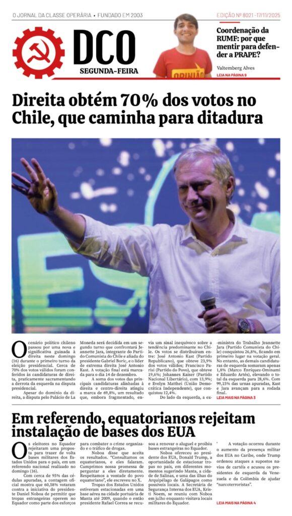 Estamos comprometidos incondicionalmente com a defesa dos interesses dos trabalhadores, do povo pobre e oprimido. Somos um jornal classista, aberto e gratuito, e queremos continuar assim. Se já houve um momento para contribuir com o DCO, este momento é agora. ; Qualquer contribuição, grande ou pequena, faz tremenda diferença. Apoie o DCO com doações a partir de R$ 20,00 . Obrigado.