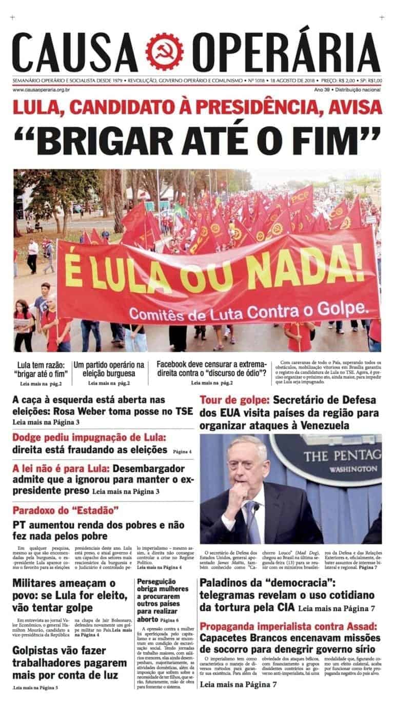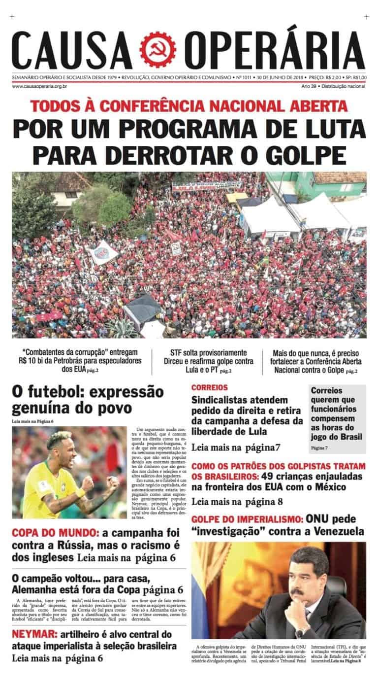 Em tempos em que a burguesia tenta apagar as linhas que separam a direita da esquerda, os golpistas dos lutadores contra o golpe; em tempos em que a burguesia tenta substituir o vermelho pelo verde e amarelo nas ruas e infiltrar verdadeiros inimigos do povo dentro do movimento popular, o Diário Causa Operária se coloca na linha de frente do enfrentamento contra tudo isso.