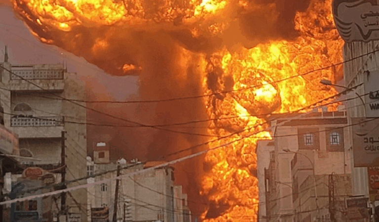 Ataques atingiram depósito de combustíveis da Companhia de Petróleo do Iêmen na Rua Al-Sitteen