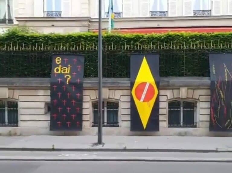 Embora a Embaixada do Brasil em Paris não tenha aberto as portas para a tradicional festa do 7 de setembro, manifestantes contra Bolsonaro protestar em frente ao local.