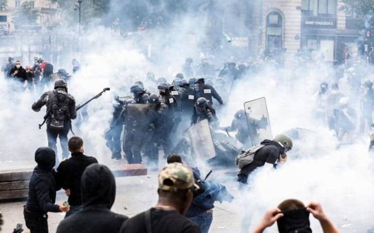 Iguais em todo o mundo, polícia francesa responde a manifestação contra brutalidade policial com severa repressão a manifestantes