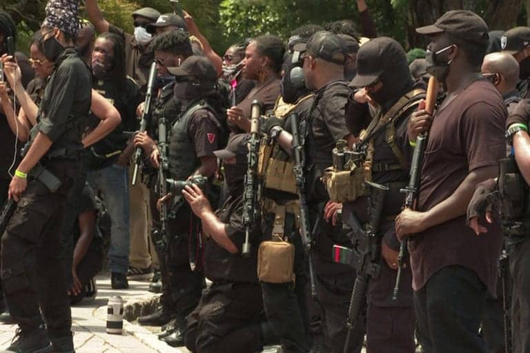 O grupo NFAC com cerca de 500 pessoas fortemente armadas marchou pelo parque dos confederados na Geórgia, berço da Ku Klux Klan intimidando grupos racistas brancos.