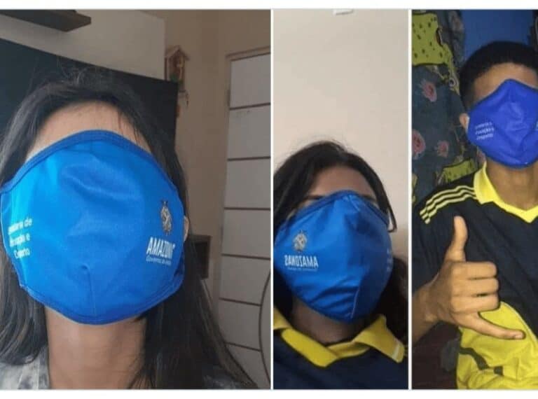Tamanho de máscaras expõe o descaso do governo bolsonarista amazonense. Os ”protocolos de segurança” na volta às aulas são uma farsa.