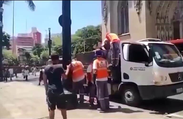 Equipes da prefeitura junto com a GCM roubam colchões, cobertores e outros pertences de moradores de rua da região do centro.
