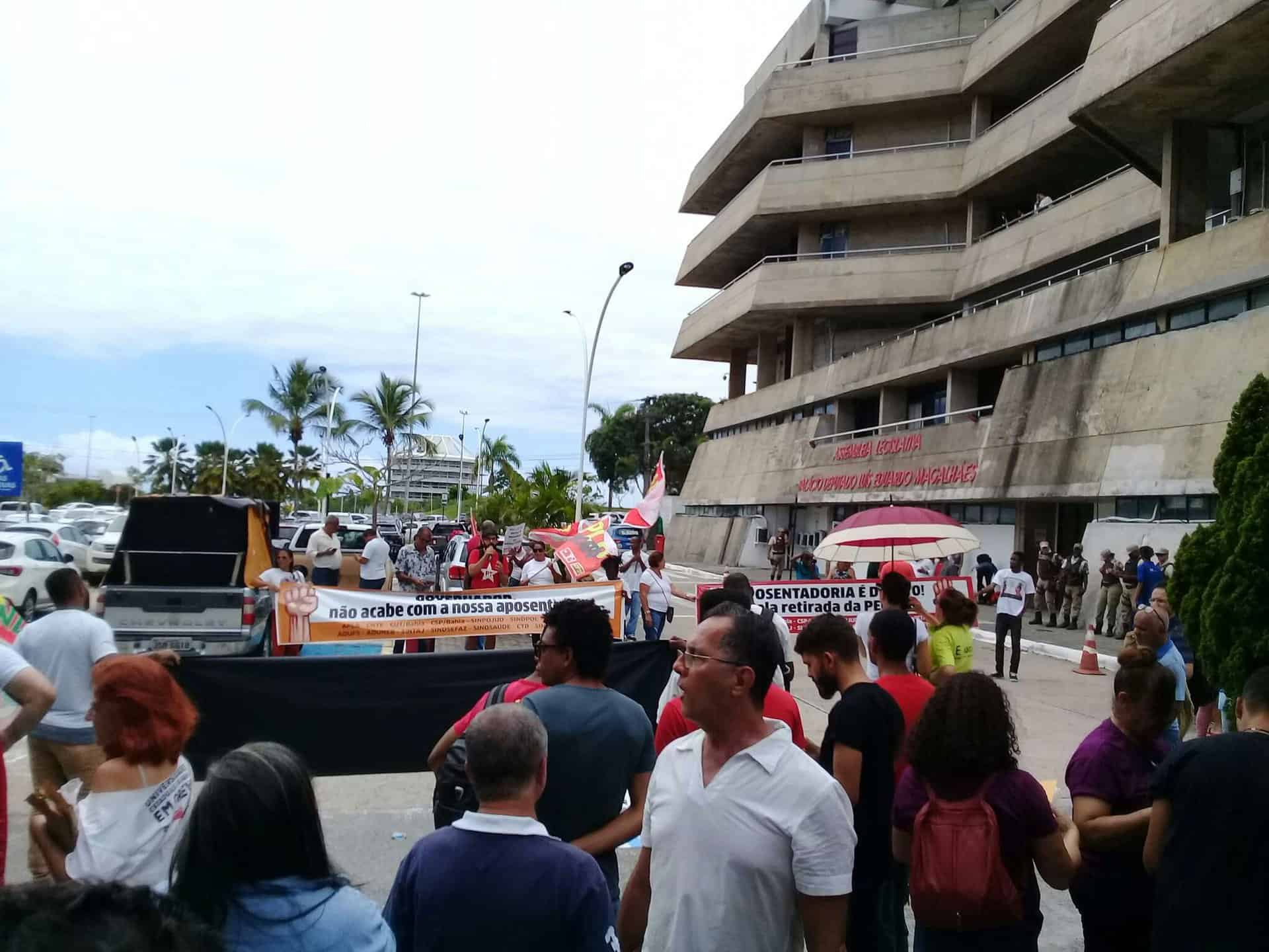 Entre as entidades presentes estava o APLB, ADUNEB, ADUSB, Sindsaúde e as centrais sindicais que, no dia anterior, haviam divulgado uma declaração contra a PEC 158/2019, que propõe a reforma da aposentadoria dos servidores.
