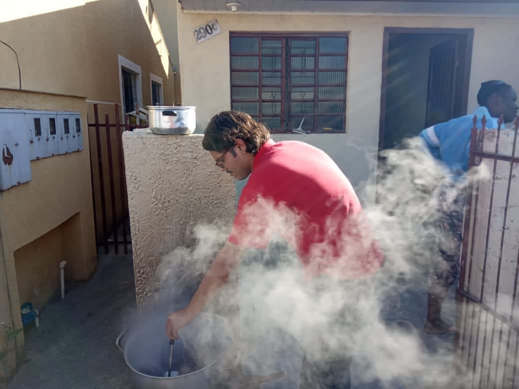 Neste primeiro almoço, o conselho serviu feijoada com farofa e laranja. Num primeiro momento, o restaurante de campanha servirá refeições como esta todos os domingos, servindo como um reforço alimentar para os moradores do bairro, muitos dos quais – como relatado no cadastro do Conselho – não sabem como se alimentarão na próxima semana.