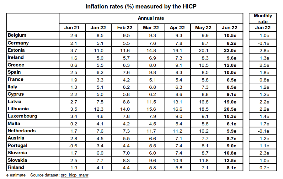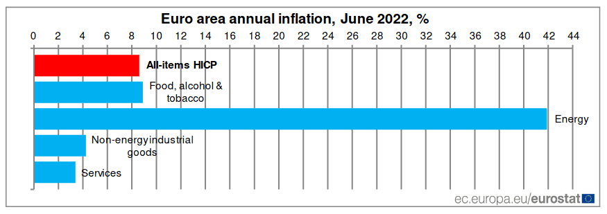 Toda a Europa tem enfrentado uma alta inflação inédita nas ultimas duas décadas. A energia teve uma inflação média de 42% na zona do euro, devido ao aumento do petróleo e do gás, e tem aumentado a inflação em todos os outros produtos.