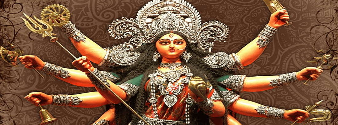 Na iconografia indiana, o número de braços não está relacionado à monstruosidade dos deuses, não se trata de representar seres cheios de membros iguais a alguns monstros da mitologia grega, mas de mostrar, sintetizados na imagem, os principais atributos do deus. Durga, por isso mesmo, não é ser monstruoso, mas deusa dominando seus atributos.